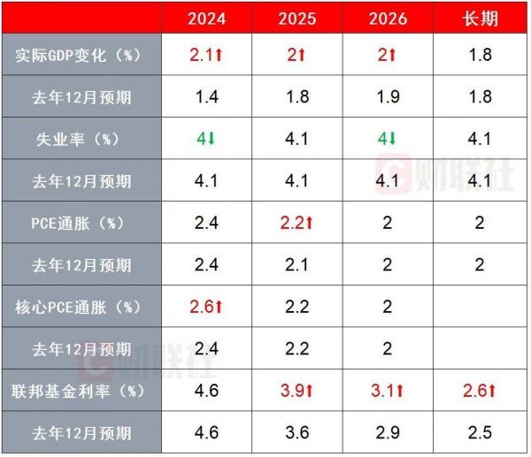 (委员们对各项经济数据的预期中位数,来源:美联储)