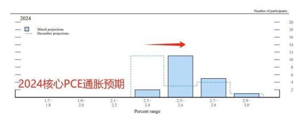 (FOMC委员对2024年核心PCE通胀预期,来源:美联储)