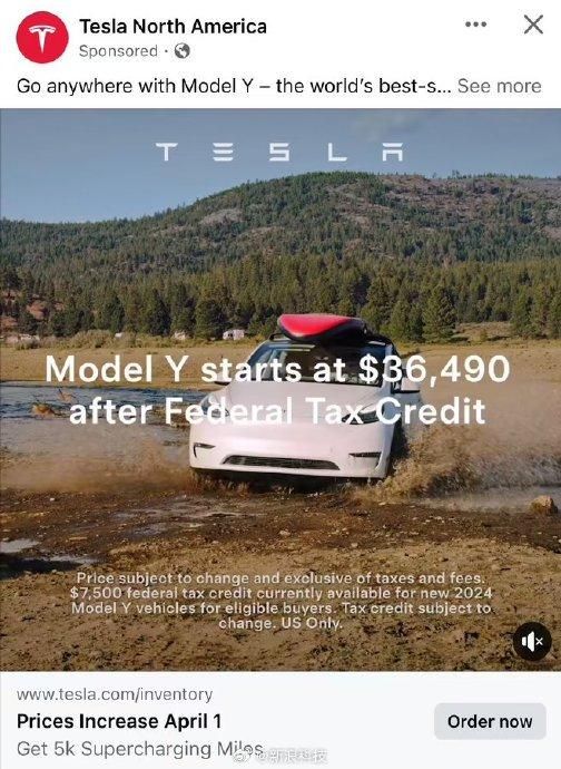 【#特斯拉时隔六年重新创建Facebook#,马斯克曾称不喜欢后者】特斯拉重新在 Facebook 创建了官方账号,时隔六年重返这个由马斯克的老对头扎克伯格创办的社交媒体平台。3 月 21 日,名为“特斯拉北美”的 Facebook 页面创建,以特斯拉标志为头像。目前该页面有两条广告,宣传特斯拉的 Model Y SUV,并链接到相关销售渠道。