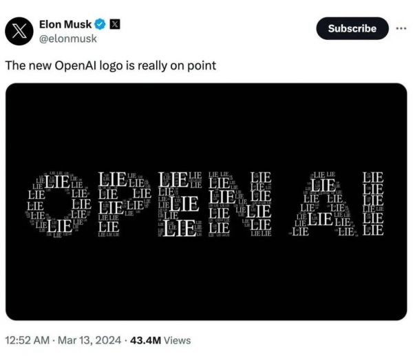 马斯克指责 OpenAI “全是谎言”