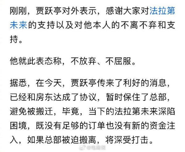 法拉第未来总部暂时保住了,贾跃亭发视频称永不放弃,不屈服!