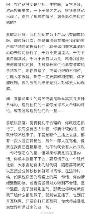 俞敏洪谈直播带货产品翻车:做到三个“千万”,真诚地去应对。还直言,随时做好了关门的准备,如果很计较被骂,干脆别打开互联网。