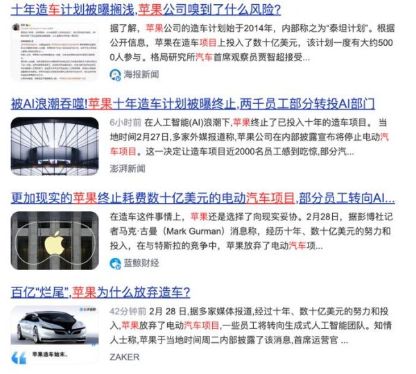 但就在此前,多家媒体的报道中都提到,苹果放弃了持续多年的造车计划。