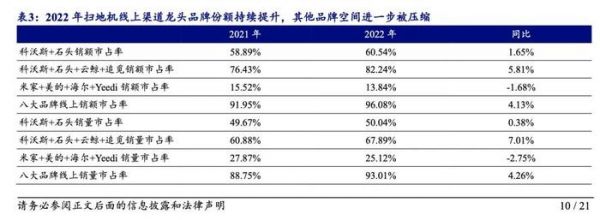 中国电子学会发布的《中国机器人产业发展报告》显示,家庭服务机器人已占据我国服务机器人市场超过六成的份额,预计到2024年,中国服务机器人市场规模有望突破100亿美元。根据公开资料,国内扫地机器人头部企业科沃斯和石头科技2022年销额、销量合计市占率分别为60.5%和50%。科沃斯此前亦与iRobot签署合作协议,有望最终达到将扫地机器人市场规模共同做大的目的。