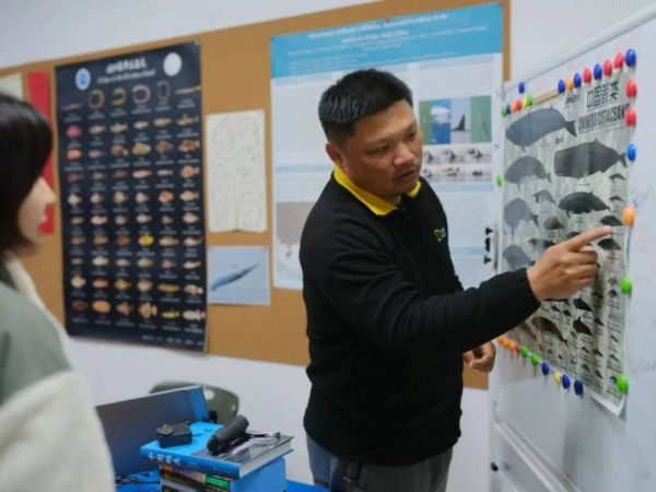 在开展布氏鲸研究之余,陈默所在的广西科学院和中科院水生所团队经常举办公共活动,参考国际经验,向从业人员和游客普及科学观鲸知识,在出海天气、噪音控制、船速、距离等方面制定公约规范。