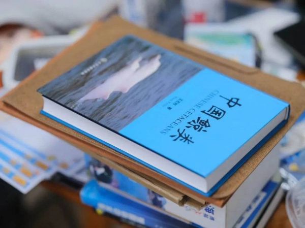 陈默办公桌上的书《中国鲸类》。在 20 世纪 80 年代之后,涠洲岛海域成为我国境内近海已知唯一的大型鲸类的稳定栖息地和捕食场所。
