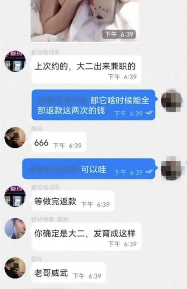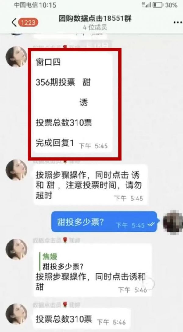 随后建立几人小群在群内发布小姐投票任务,完成任务后返现并微信发送小姐名片实现线下约会。