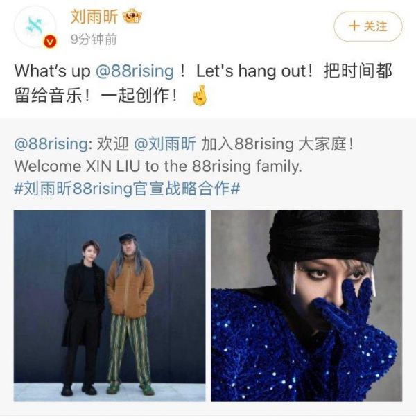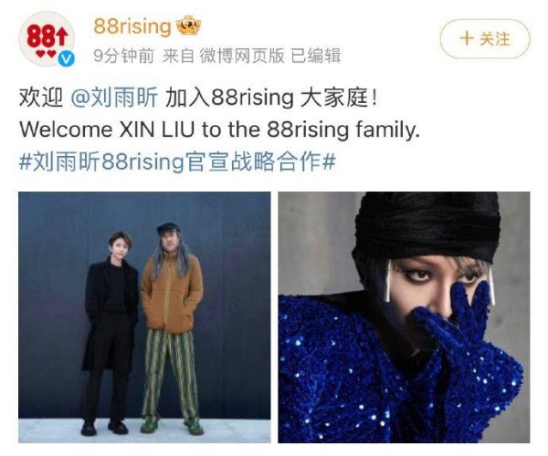 #刘雨昕88rising官宣战略合作#这是什么双厨狂喜的大新闻!今日刘雨昕晒与88rising CEO合照,并与88rising达成战略合作怪不得她最近频繁飞往美国!之前还参加88rising moonrise gala,一切都是前兆有了新合作伙伴的支持,刘雨昕未来一定会有更多国际化的发展!狠狠期待她的海外演出啦