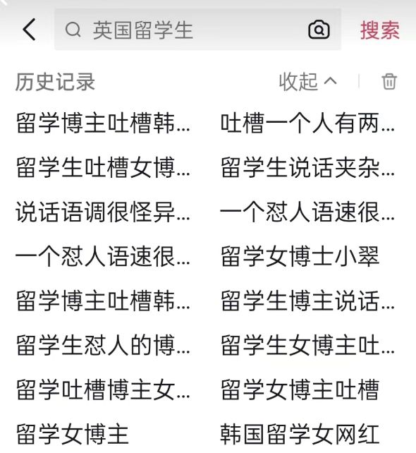然而,在世界的另一头,当一位网友想要借助抖音找到自己关注很久的一位博主时,她点开搜索框,输入了不下20次脑海中能够想到的关键词。可在经历了一系列形容词、名词与动词的排列组合后,她还是无功而返。