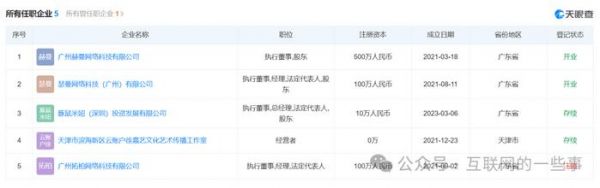 据媒体报道,她关联5家企业,其中4家为存续状态,包括广州赫曼网络科技有限公司、瑟曼网络科技(广州)有限公司等。她通过直接或间接持股,拥有多家企业实际控制权。