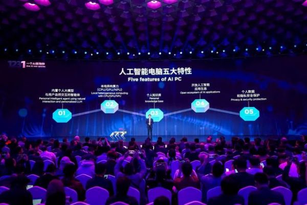 (图源:联想集团)所以,4月举行的2024联想创新科技大会上,联想带来了内置个人智能体“联想小天”的 AI PC系列产品,并且确立了内嵌个人大模型与用户自然交互的智能体、配备CPU/GPU/NPU相结合的本地异构算力、建立个人知识库、连接开放AI应用生态、保护个人数据和隐私安全等几大特征。