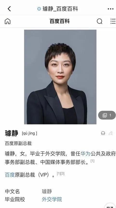 公开资料显示,璩静毕业于外交学院,曾任新华社中央新闻采访中心记者。2015年,璩静加入华为,任华为公共及政府事务部副总裁、中国媒体事务部部长,负责华为国内媒体事务、对外传播和危机沟通等。2021年,璩静入职百度,任副总裁(VP),负责集团公众沟通部工作。