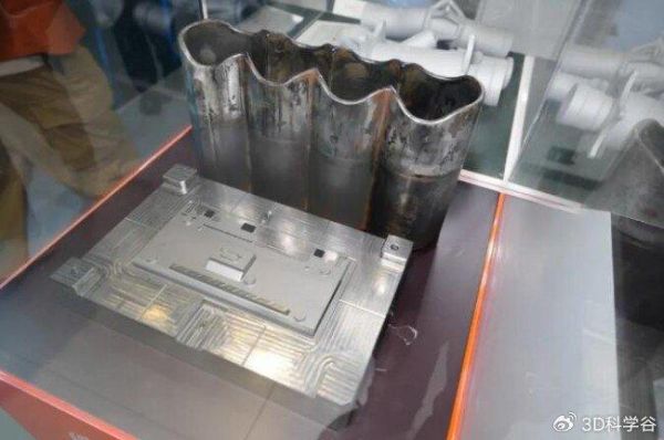 铂力特为匀晶科技3D打印的五缸发动机水套尺寸为350mm×105mm×210mm,重量8kg;注塑模具尺寸为310mm×200mm×55mm,重量4kg。两款产品采用自动嫁接技术,实现模具随形水路模具型腔等重要部位的3D打印、零件和机加工底座的自动嫁接,帮助客户节省加工成本、缩短制作周期,提升综合生产效益。
