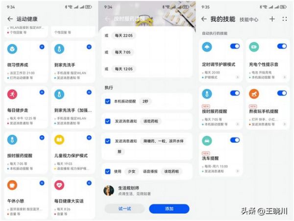 我们不止可以通过华为手机中多个APP的声音设置来陪伴妈妈,还可以用小艺技能对妈妈进行日常提醒。我就为妈妈的手机增设了按时喝药、少看手机等提醒,技能中心里已经预设了大量技能可以直接选用,当然如果没有的话,也可以自定义设置。就算不在身边,也能让妈妈感受到你的爱。设置小艺技能也非常简单,打开手机“设置”、在“智慧助手”里找到“智慧场景”就可以添加技能了。赶快行动起来吧!