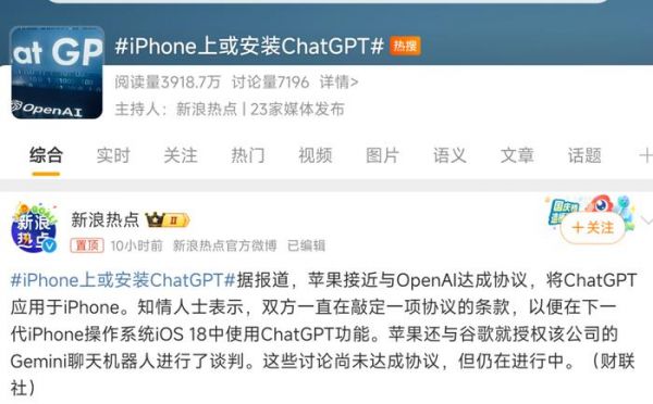 iPhone 上或安装 ChatGPT 今日冲上热搜,引发网友关注。