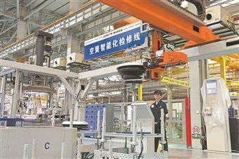 图②为在空簧智能化检修线旁,广州动车段转向架车间技术人员在盯控机器人作业。马 鑫 摄