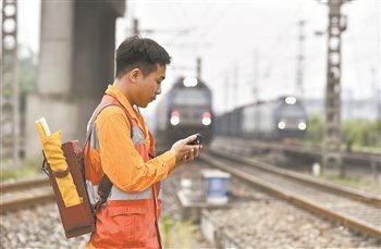 图①为手持“指路行车”智能化信息系统终端的绵阳工务段职工在查看工作指令。胡志强 摄