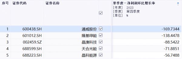 从单季度来看,前四家处于一线梯队的光伏企业,2023年四季度业绩几乎都遭遇滑铁卢,归母净利润大幅跳水,而拥有硅料业务的通威股份则因硅料价格下跌而承受着更大的跌幅。