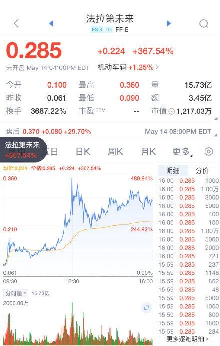 贾跃亭这班加的值啊 法拉第未来从4分钱涨到两毛8了,成交额3.45亿…