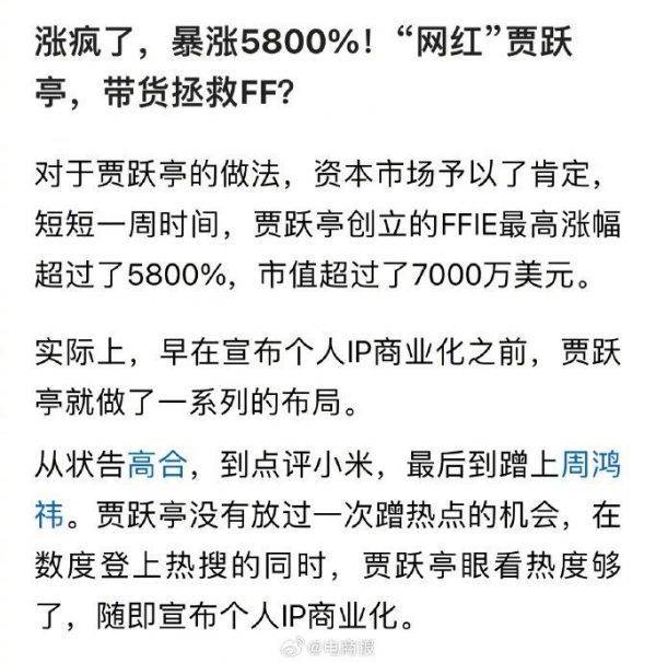 身价大涨的贾跃亭汇报大事,带货救FF有望了?
