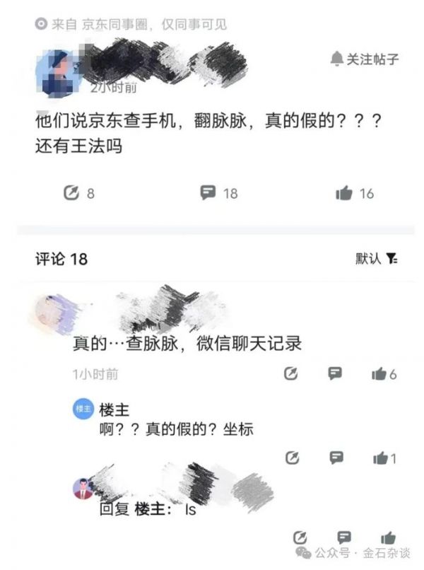 更为离谱的是,京东开始查员工手机了,翻脉脉和微信聊天记录。有童鞋在某书上表示:如果不让查,就主动离职。