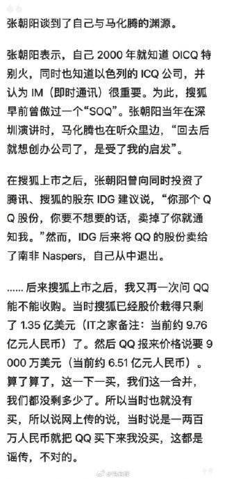张朝阳称两次错过腾讯,QQ百万贱卖给搜狐是谣传,曾收购报价 9000万美元。