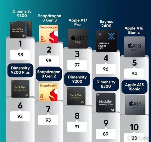 手机处理器前十:天玑9300≥高通骁龙8 Gen 3>Apple A17 Pro