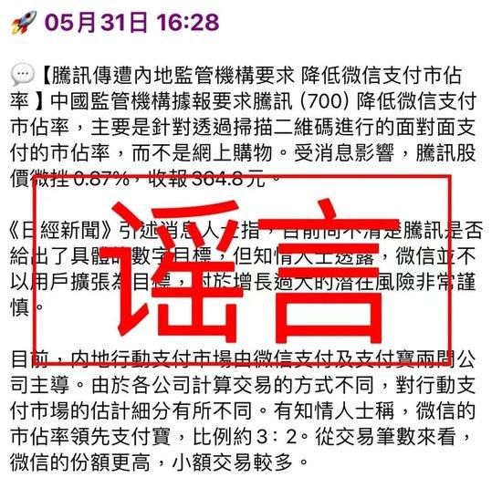 今日,有外媒报道称,微信支付被要求降低市场份额,引发市场关注。经确认,相关传闻不实,纯属谣言。