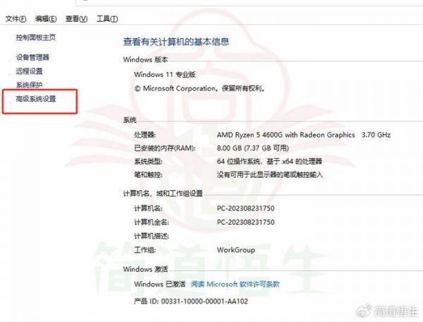 2、修改或重设“虚拟内存”,详细步骤如下:①在“此电脑”图标上,点击鼠标右键,找到“高级系统设置”,我的是Windows11系统,只能以该系统为例: