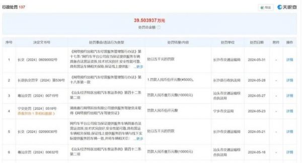 另外,关于其的行政处罚高达137个,累计处罚总金额超过39万元。其中大多是驾驶员未取得《网络预约出租汽车驾驶员证》、车辆未取得《网络预约出租汽车运输证》的情形。