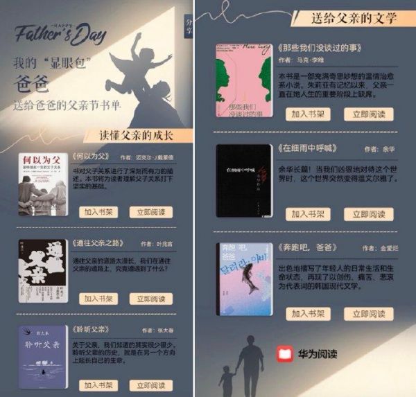 在这个父亲节,我们也要为老爸推荐些好东西~#华为浏览器#每日早报,每天清晨都会推送不同领域的品质资讯,可听可看,这样老爸了解天下大事就更方便了。另外#华为阅读#也诚意满满,直接奉上父亲节书单,无论是讲述父子关系,还是经典著作,都能让老爸在没事的时候读一读,充实一下生活。我们也可以对着小艺说“4个字逗笑老爸”,就能Get更多向老爸表达爱的方式,大家快去试试吧。