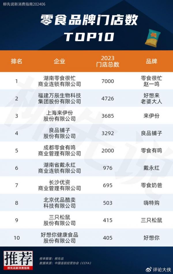 中国零食榜一变了:全国门店数冲破1万,反超良品铺子、三只松鼠