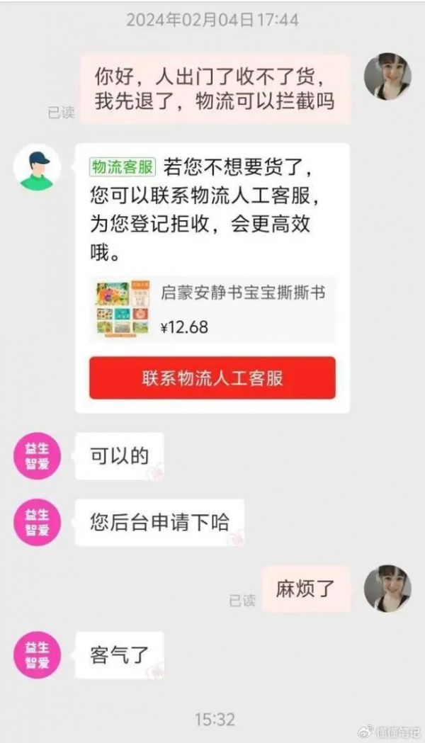 网友“李嗲”表示,自己被拼多多的真人客服打动,因为当下很多平台都是AI回复,消费者的感受如同“鬼打墙”,永远得不到满意的答复。比如“拦截快递”这件事,平台一般都不愿意涉及。而在拼多多,“李嗲”能得到真人客服的帮助,下错的单、下重的单,都能在官方客服的帮助下进行拦截。“不像某平台,非得跟商家谈崩了小二才介入仲裁,再多方举证,累都累死了。”在“李嗲”看来,拼多多客服简直比自己还在乎购物体验,在拼多多平台上有一种受宠感。