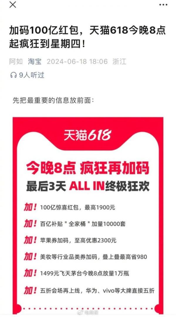 京东追加超过100亿的投入,用于补贴用户,并推出“超级惊喜红包”等福利活动。天猫同样加码100亿红包,为消费者带来实实在在的优惠。