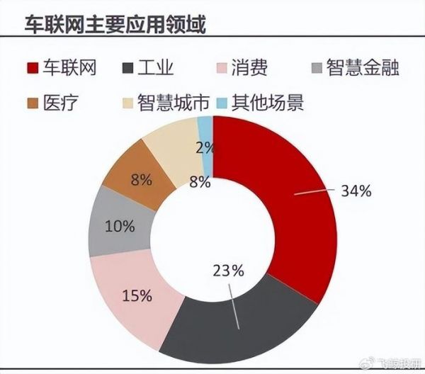 从全球物联网的细分使用场景来看,车联网、工业、消费市场都是非常重要的下游应用市场,分别以车联网(34%)、工业(23%)、消费(15%)的市场份额位居2023年前三名,市场份额超过70%,至关重要。