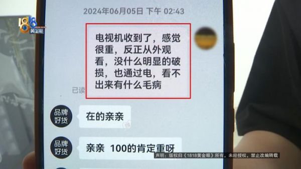 “品牌好货”店铺运营店长:修的话电视机这个行业,本身最值钱的就是屏幕,你说屏坏了你换个屏,肯定是费用比较高嘛。这具体要问售后,你说具体多少钱我们也不知道,这个肯定是要个人承担的。因为我们当时送货的时候,给他有通电验机,都是完好的嘛。