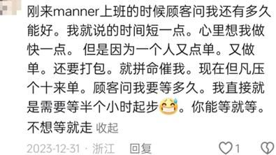 而Manner想要的又好又快又便宜,可能吗?一个网友的吐槽很好的解释了一切。