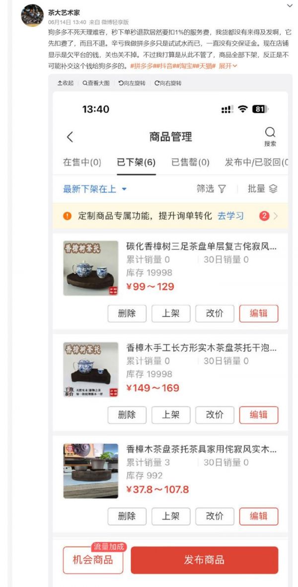 百万拼多多商家困在技术服务费:拍后取消订单也要收,退还竟反向抹零