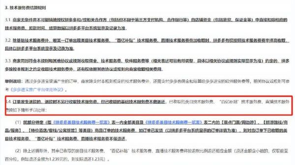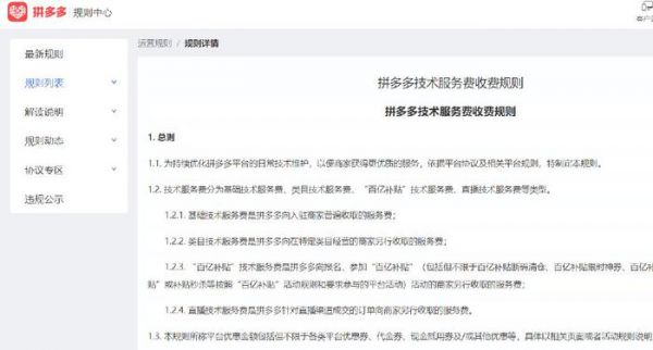 针对技术服务费,值接Talk在拼多多官方网站上查看到了详细规则。