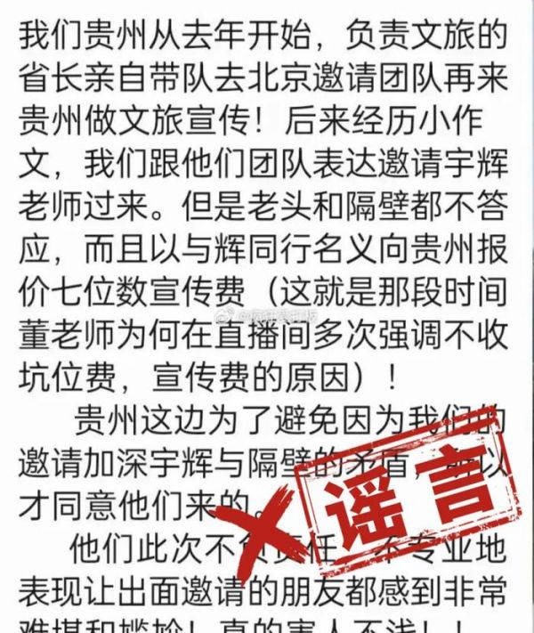 “我们贵州从去年开始,负责文旅的省长亲自带队去北京邀请团队再来贵州做文旅宣传,而且以与辉同行名义向贵州报价七位数宣传费。”