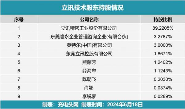立讯技术公司股东情况如下图所示。