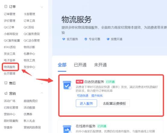 顺丰速运作为首批接入的品牌,为消费者提供了“顺丰包邮”选项,而其他快递品牌也在陆续接入中。