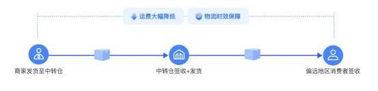 除了自选快递,在去年10月,抖音还针对偏远地区推出了中转仓模式,显著降低了商家向偏远地区发货的物流成本,同时保证了配送效率。