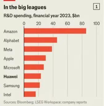 文章指出,2023年,华为的销售额约为1000亿美元,约为美国科技公司甲骨文的2倍;它的规模虽然只有韩国手机制造商三星的一半,但在研发方面的支出却超越了三星。华为2023年的研发预算为230亿美元,只有Alphabet(谷歌母公司)、亚马逊、苹果和微软这几家美国科技巨头超过了它。2023年华为的利润约为123亿美元,与美国通信设备巨头思科不相上下,远远超过其主要竞争对手爱立信和诺基亚。且后两者正在裁员,华为的员工数量却在持续扩张,目前人数比2021年增加了1.2万人。