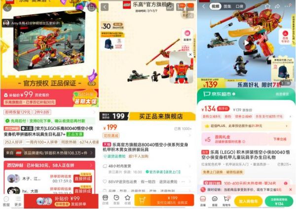 最近,小编发现同一个乐高产品,在淘宝天猫、京东、拼多多三个平台上买,拼多多居然能便宜20%-50%,还都是乐高授权店。