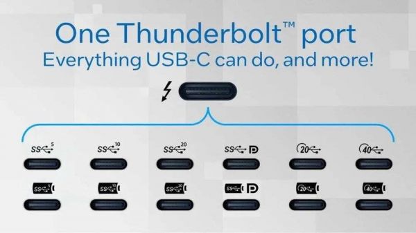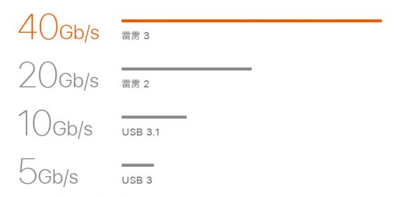 雷雳3的普及并不是因为它传输速度达到了同时代最快——是当时USB Type-C 3.1 Gen2接口的四倍,而是由于英特尔宣布向USB推广组织开放了Thunderbolt协议规范,这让采用USB Type-C形态的雷雳3有了更好的兼容基础。