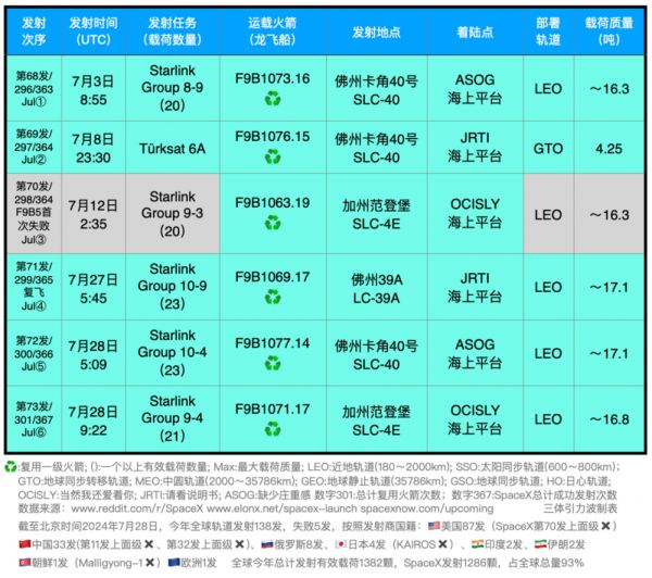此外,21颗星链包括13颗D2C直连手机卫星,这是7月11日发射失败而再入烧毁13颗Direct To Cell(D2C星链)的替代品,以快速填补部署失败之缺。截至目前,已累计部署116颗(7月11日Starlink G9-3部署失败13颗未计入)。