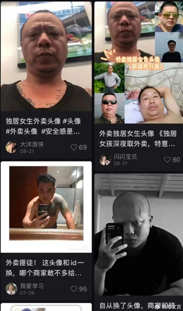 这些头像不仅是为了吓阻那些可能抱有不轨之心的人,更是出于对实际事件的恐惧。近年来,社交平台上不断有女性分享她们遭遇外卖员骚扰的经历,比如外卖员偷窃顾客的内衣,偷闻鞋子,甚至更为严重的肢体骚扰事件。这些现象让人不禁对外卖平台的管理和外卖员的行为感到担忧。