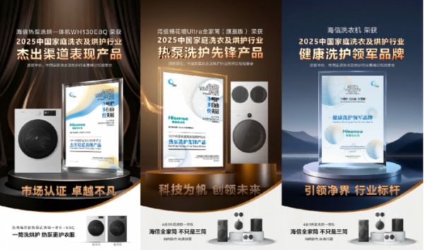 9月25日,由中国家电网主办的2025中国家庭洗衣及烘护行业高峰论坛在济南开幕,各大头部企业齐聚一堂,共同探讨洗护行业破局之道。海信洗衣机凭借卓越的技术创新实力,一举斩“2025中国家庭洗衣及烘护行业健康洗护领军品牌”大奖,其明星产品海信棉花糖Ultra全家筒获得“热泵洗护先锋产品”大奖,新品海信热泵洗烘一体机E8Q更荣获“杰出渠道表现产品奖”。
