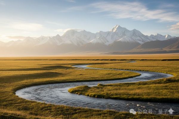 Prompt:一张以3:2画幅比例拍摄的风光照片。画面展现辽阔的高原草地,远处雪山与天空相接,前景蜿蜒的河流引导视线延伸至地平线。沐浴在清晨金色的阳光下,氛围柔和、清澈而明亮。构图开阔且灵活,既可横幅展现山川的壮丽,也可竖幅裁切突出天空与地平线的延伸感。使用徕卡M11相机搭配35mm f/1.4镜头拍摄。色彩调校强调高分辨率、细节丰富,并呈现自然的摄影风格。